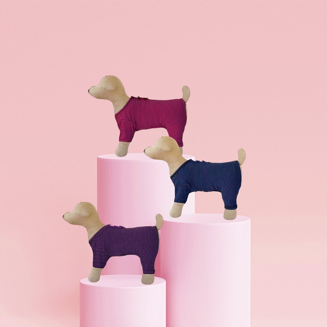 Introducing the perfect solution to keep your furry baby warm and cozy during chilly nights, with Sweet Dreams Dog Pajama by Hello Doggie. Made from soft and high-quality jersey knit cotton fabric, these adorable pajamas are designed to provide maximum comfort for your beloved furry baby. Whether your pup enjoys snuggling up on the couch or curling up in their bed, these pajamas will keep them warm and toasty all night long and give them a good night's sleep with sweet dreams for your furry friend. For easy care, wash on cool with no bleach or softener and air dry or tumble on low.   Sizes XS - LG  MSRP $36.00