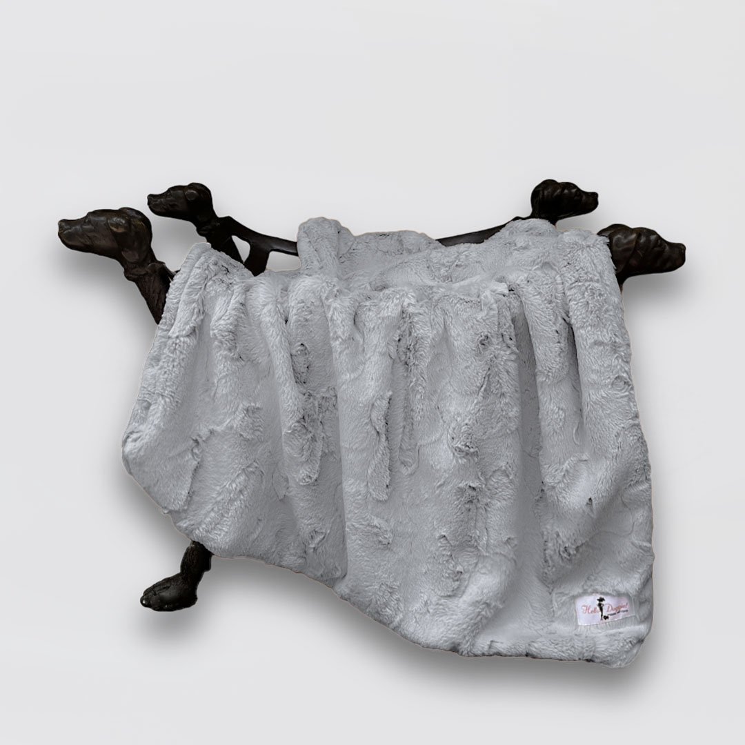 The Dolce Vita Dog Blanket by Hello Doggie is made of luxurious soft-cuddle fabric. Available in four beautiful colors this bed collection is perfect for cuddle time. It is easy to care for machine wash on a gentle cycle, no bleach or fabric softener, dry on low heat or air dry for brand new look every time. Matching bed sold separately.  Dimensions   Small Blanket - 17" x 14"  |  For dogs up to 5 Lbs MSRP - $49.99 Large Blanket - 34" x 29"  |   For dogs up to 20 Lbs MSRP - $79.99 Throw Blanket - 59" x 59"  |  For dogs up to 100  Lbs + MSRP - $360.00  *Blanket is handmade and sizes may vary slightly. Made in USA.
