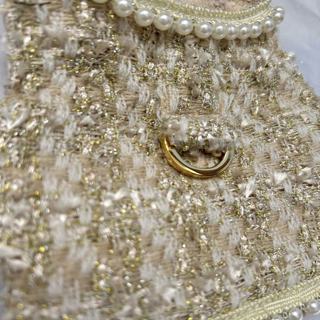 Elevate your pet’s style with our Envogue Dog Harness Collection by Hello Doggie. Each harness is thoughtfully designed, ensuring every baby receives the royal treatment they deserve. From the very selection of fabrics to the intricate piecing together of each harness, no detail is spared in creating these masterpieces. One of the standout features of our luxury dog harnesses is each one has their own unique lace trimming, with a range of classic and trendy styles to choose from, you can find the perfect style to suit your pup's personality and meet their fashion needs. It's not always that luxury items are comfortable, but Hello Doggie prioritizes on comfort and functionality of our harnesses. Thoughtful features such as Velcro straps are easy-to-use fasteners making it a breeze to put on and take off, ensuring a hassle-free experience for both you and your furry baby. When it comes to caring for your luxury dog harness, our high standards extend beyond its creation, to keep the coat looking its best so that your pup can continue to strut their stuff in style, spot clean or wash on delicate, no bleach or softener and air dry. Not only can you elevate your baby’s wardrobe all year round, matching coats for those cold chilly days are also available, sold separately.  *Check Size Chart*  Limited Edition  MSRP $84.00  *Harnesses are handmade sizes may vary slightly. Made in USA.