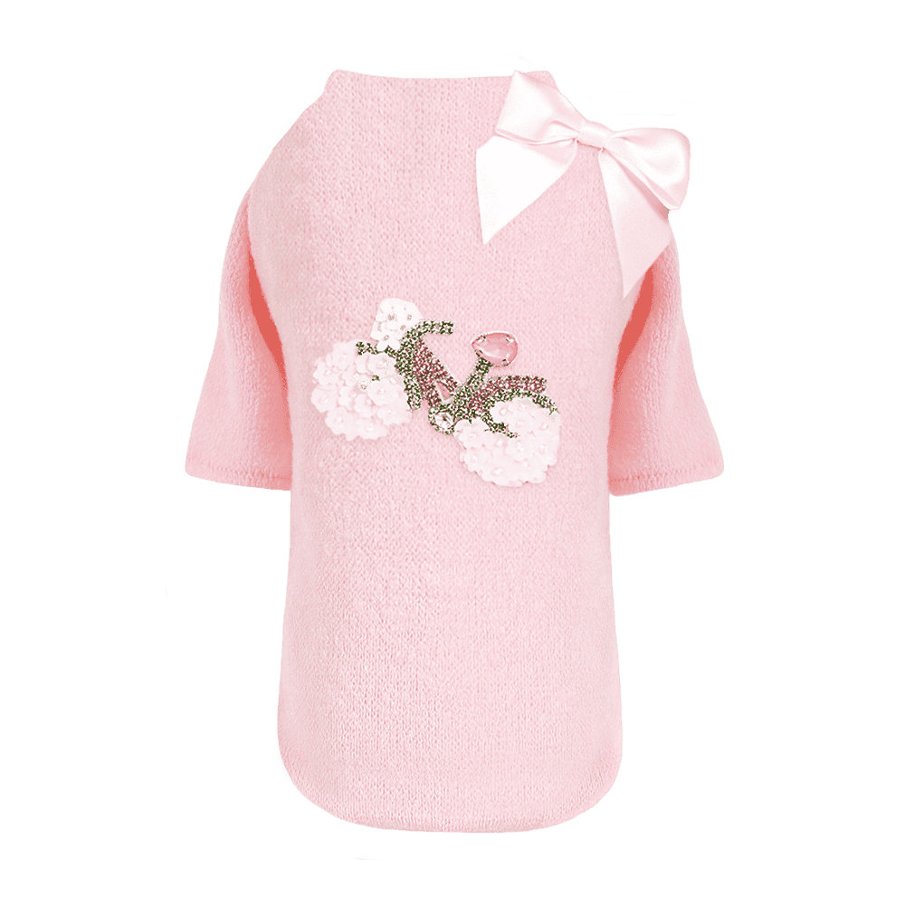 Take a bike ride around town with this snug and sporty Bicycle Sweater from Hello Doggie! Features our signature satin bow and a bicycle appliqué. Hand wash, Air dry or tumble on low. Sizes SM - LG  MSRP: $49.99 *Sweater is handmade, sizes may vary slightly. Made in USA.